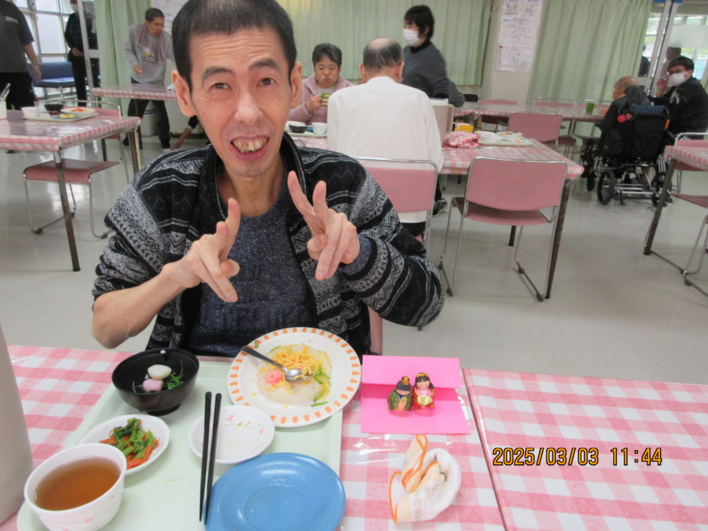梅の花もちらほら咲き始めました。皆さん春の装いをお昼ご飯をお取りになりながら、